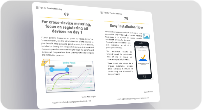Tips for Passive Metering Tips for Passive Metering 69 70 For cross-device metering, Easy installation flow focus on registering all Participation in research should be made as easy devices on day 1 as possible. One of the goals of passive metering technology is to achieve the easiest possible If your passive measurement panel is Ȋcross-deviceȋ or installation process for the user. Ȋcross-platformȋ, use the initial attention of the panelist to Eventually, there should be a one- your benefit. Help panelists get all meters, for all devices, click installation on all of a installed on the day that the panelist signs up. In these initial participant’s devices. moments, panelists are more likely to recall the benefits and The installation should be purpose of the panel and have the motivation to complete tailored toward the participant’s the installation process. ease of use by leaving out unnecessary technical details. There should also always be a singular installation process. When activated, it should run continuously until it is ended by the participant. Source: Wakoopa Source: Verto Analytics © 2017 GRBN Participant Engagement Handbook | 166 © 2017 GRBN Participant Engagement Handbook | 167