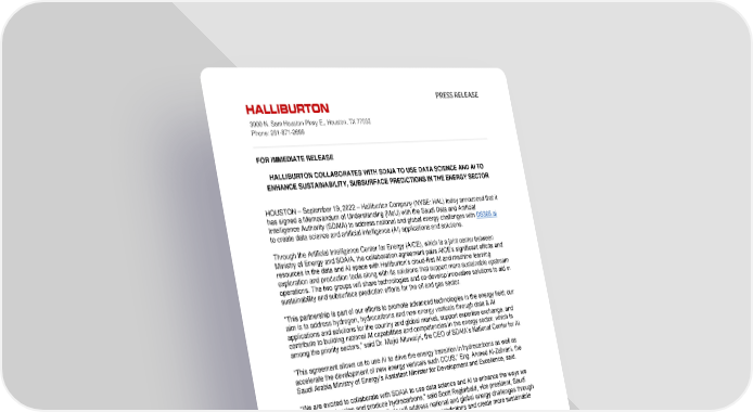 Halliburton Collaborates with SDAIA to Use Data Science and AI to Enhance Sustainabilirty, Subsurface Predictions in the Energy Sector