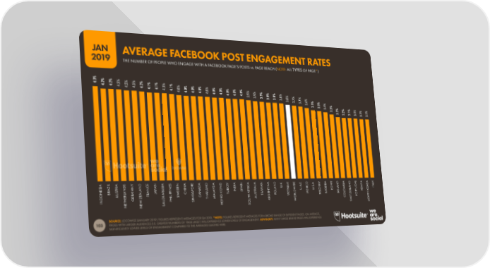 JAN AVERAGE FACEBOOK POST ENGAGEMENT RATES 2019 THE NUMBER OF PEOPLE WHO ENGAGE WITH A FACEBOOK PAGE’S POSTS vs. PAGE REACH (NOTE: ALL TYPES OF PAGE*) 4.3%4.2%4.2%4.2%4.2%4.2%4.2% 4.1%4.1%4.1%4.1%4.0%4.0%4.0%4.0%4.0%4.0%4.0%4.0%4.0%4.0% 3.9%3.9%3.9%3.8%3.8%3.8%3.8% 3.7%3.7%3.6% 3.5%3.5%3.4% 3.3%3.2%3.2%3.1% 3.1%3.1%3.1% A L A S Y E A S A E A A Y A A A A . E . . A T A L A A Y I I I D N I N R D I G I N I N D K M E O A M I P D I D L S Z D N N C E E D S E I C L N N . D . . R Y A Y E R A B N N N K D A I A I U A I A C S U N B N R A E A T N A N P N D I O A Y A . I . I E G N T R S A A I H P A O R N P R R T A N W X G A M A I L A A R E L A I F W L U U G L L U E O N B A M J A N I U S T I N T E L G E T U L A R PP C L K A D I E O R K K R A I W A A T S A E O E L E R E R O R E F L G A I M L D A E E Z I I S C H G H U T G P V R B N I Z O H G D H N T M T A R O O T P T N H U P I N C I I T W S O U A U E E A O W W O N N S H S S S SOURCE: LOCOWISE (JANUARY 2019). FIGURES REPRESENT AVERAGES FOR Q4 2018. *NOTE: FIGURES REPRESENT AVERAGES FOR A BROAD RANGE OF DIFFERENT PAGES. ON AVERAGE, 103 PAGES WITH LARGER AUDIENCES (I.E. GREATER NUMBERS OF ‘PAGE LIKES’) WILL EXPERIENCE LOWER LEVELS OF ENGAGEMENT. ADVISORY: MANY LARGE BRAND PAGES WILL EXPERIENCE SIGNIFICANTLY LOWER LEVELS OF ENGAGEMENT COMPARED TO THE AVERAGES QUOTED HERE.