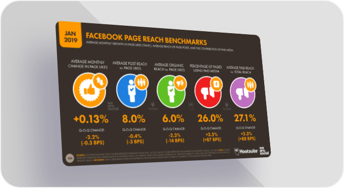 JAN FACEBOOK PAGE REACH BENCHMARKS 2019 AVERAGE MONTHLY GROWTH IN PAGE LIKES (‘FANS’), AVERAGE REACH OF PAGE POSTS, AND THE CONTRIBUTION OF PAID MEDIA AVERAGE MONTHLY AVERAGE POST REACH AVERAGE ORGANIC PERCENTAGE OF PAGES AVERAGE PAID REACH CHANGE IN PAGE LIKES vs. PAGE LIKES REACH vs. PAGE LIKES USING PAID MEDIA vs. TOTAL REACH +0.13% 8.0% 6.0% 26.0% 27.1% Q-O-Q CHANGE: Q-O-Q CHANGE: Q-O-Q CHANGE: Q-O-Q CHANGE: Q-O-Q CHANGE: -2.2% -0.4% -2.3% +3.5% +3.3% (-0.3 BPS) (-3 BPS) (-14 BPS) (+87 BPS) (+88 BPS) SOURCE: LOCOWISE (JANUARY 2019). FIGURES REPRESENT AVERAGES FOR Q4 2018. ‘Q-O-Q CHANGE’ FIGURES REPRESENT THE QUARTER-ON-QUARTER CHANGE vs. Q3 2018. NOTE: FIGURES 100 REPRESENT AVERAGES FOR A BROAD RANGE OF DIFFERENT PAGES. ON AVERAGE, PAGES WITH LARGER AUDIENCES (I.E. GREATER NUMBERS OF ‘PAGE LIKES) WILL EXPERIENCE LOWER LEVELS OF ORGANIC REACH. ADVISORY: MANY LARGE BRAND PAGES WILL EXPERIENCE SIGNIFICANTLY LOWER LEVELS OF REACH COMPARED TO THE AVERAGES QUOTED HERE.