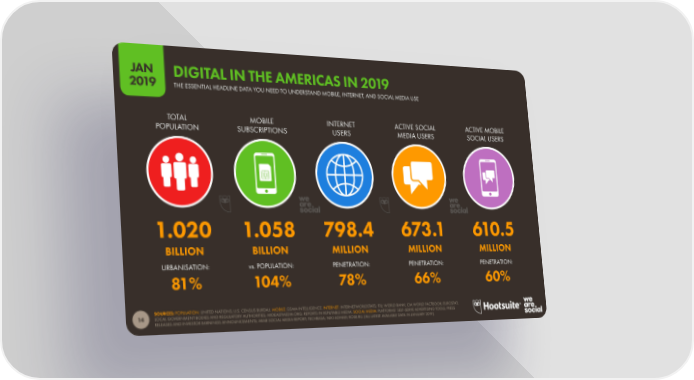 JAN DIGITAL IN THE AMERICAS IN 2019 2019 THE ESSENTIAL HEADLINE DATA YOU NEED TO UNDERSTAND MOBILE, INTERNET, AND SOCIAL MEDIA USE TOTAL MOBILE INTERNET ACTIVE SOCIAL ACTIVE MOBILE POPULATION SUBSCRIPTIONS USERS MEDIA USERS SOCIAL USERS 1.020 1.058 798.4 673.1 610.5 BILLION BILLION MILLION MILLION MILLION URBANISATION: vs. POPULATION: PENETRATION: PENETRATION: PENETRATION: 81% 104% 78% 66% 60% SOURCES: POPULATION: UNITED NATIONS; U.S. CENSUS BUREAU. MOBILE: GSMA INTELLIGENCE. INTERNET: INTERNETWORLDSTATS; ITU; WORLD BANK; CIA WORLD FACTBOOK; EUROSTAT; LOCAL GOVERNMENT BODIES AND REGULATORY AUTHORITIES; MIDEASTMEDIA.ORG; REPORTS IN REPUTABLE MEDIA. SOCIAL MEDIA: PLATFORMS’ SELF-SERVE ADVERTISING TOOLS; PRESS 14 RELEASES AND INVESTOR EARNINGS ANNOUNCEMENTS; ARAB SOCIAL MEDIA REPORT; TECHRASA; NIKI AGHAEI; ROSE.RU. (ALL LATEST AVAILABLE DATA IN JANUARY 2019).