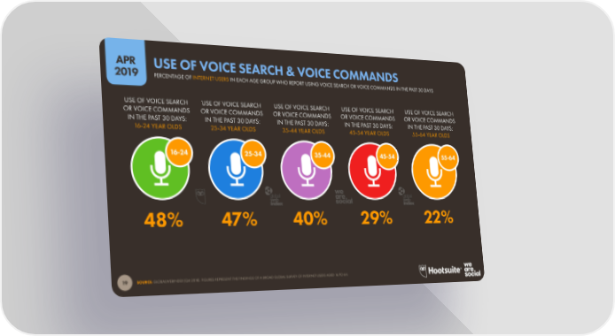 APR USE OF VOICE SEARCH & VOICE COMMANDS 2019 PERCENTAGE OF INTERNET USERS IN EACH AGE GROUP WHO REPORT USING VOICE SEARCH OR VOICE COMMANDS IN THE PAST 30 DAYS USE OF VOICE SEARCH USE OF VOICE SEARCH USE OF VOICE SEARCH USE OF VOICE SEARCH USE OF VOICE SEARCH OR VOICE COMMANDS OR VOICE COMMANDS OR VOICE COMMANDS OR VOICE COMMANDS OR VOICE COMMANDS IN THE PAST 30 DAYS: IN THE PAST 30 DAYS: IN THE PAST 30 DAYS: IN THE PAST 30 DAYS: IN THE PAST 30 DAYS: 16-24 YEAR OLDS 25-34 YEAR OLDS 35-44 YEAR OLDS 45-54 YEAR OLDS 55-64 YEAR OLDS 16-24 25-34 35-44 45-54 55-64 global global web web index index 48% 47% 40% 29% 22% SOURCE:SOURCE: GL GLOBALOBALWEBINDEX (Q4 2WEBINDEX (Q4 200118). FIGURES REPRESENT THE FINDINGS OF A BRO8). FIGURES REPRESENT THE FINDINGS OF A BROAD GLAD GLOBAL SURVEY OF INTERNET USERS AOBAL SURVEY OF INTERNET USERS AGED 1GED 16 T6 TO 64.O 64. 19