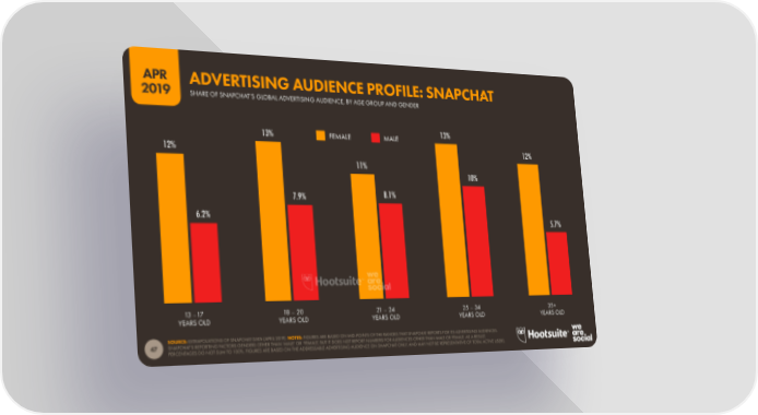 APR ADVERTISING AUDIENCE PROFILE: SNAPCHAT 2019 SHARE OF SNAPCHAT’S GLOBAL ADVERTISING AUDIENCE, BY AGE GROUP AND GENDER 13% FEMALE MALE 13% 12% 12% 11% 10% 7.9% 8.1% 6.2% 5.7% 13 –17 18 – 20 21 – 24 25 – 34 35+ YEARS OLD YEARS OLD YEARS OLD YEARS OLD YEARS OLD SOURCE: EXTRAPOLATIONS OF SNAPCHAT DATA (APRIL 2019). NOTES: FIGURES ARE BASED ON MID-POINTS OF THE RANGES THAT SNAPCHAT REPORTS FOR ITS ADVERTISING AUDIENCES. SNAPCHAT’S REPORTING FACTORS GENDERS OTHER THAN ‘MALE’ OR ‘FEMALE’, BUT IT DOES NOT REPORT NUMBERS FOR AUDIENCES OTHER THAN MALE OR FEMALE. AS A RESULT, 47 PERCENTAGES DO NOT SUM TO 100%. FIGURES ARE BASED ON THE ADDRESSABLE ADVERTISING AUDIENCE ON SNAPCHAT ONLY, AND MAY NOT BE REPRESENTATIVE OF TOTAL ACTIVE USERS.