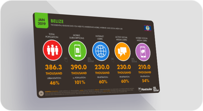 JAN BELIZE 2019 THE ESSENTIAL HEADLINE DATA YOU NEED TO UNDERSTAND MOBILE, INTERNET, AND SOCIAL MEDIA USE TOTAL MOBILE INTERNET ACTIVE SOCIAL MOBILE SOCIAL POPULATION SUBSCRIPTIONS USERS MEDIA USERS MEDIA USERS 386.3 390.0 230.0 230.0 210.0 THOUSAND THOUSAND THOUSAND THOUSAND THOUSAND URBANISATION: vs. POPULATION: PENETRATION: PENETRATION: PENETRATION: 46% 101% 60% 60% 54% SOURCES: POPULATION: UNITED NATIONS; U.S. CENSUS BUREAU. MOBILE: GSMA INTELLIGENCE. INTERNET: INTERNETWORLDSTATS; ITU; WORLD BANK; CIA WORLD FACTBOOK; EUROSTAT; LOCAL GOVERNMENT BODIES AND REGULATORY AUTHORITIES; MIDEASTMEDIA.ORG; REPORTS IN REPUTABLE MEDIA. SOCIAL MEDIA: PLATFORMS’ SELF-SERVE ADVERTISING TOOLS; PRESS 30 RELEASES AND INVESTOR EARNINGS ANNOUNCEMENTS; ARAB SOCIAL MEDIA REPORT; TECHRASA; NIKI AGHAEI; ROSE.RU. (ALL LATEST AVAILABLE DATA IN JANUARY 2019).
