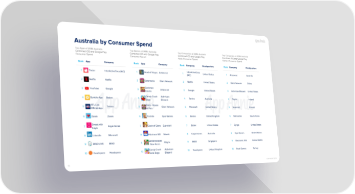 Australia by Consumer Spend Top Apps of 2018: Australia Top Games of 2018: Australia Top Companies of 2018: Australia Top Companies of 2018: Australia Combined iOS and Google Play Combined iOS and Google Play Combined iOS and Google Play Combined iOS and Google Play Consumer Spend Consumer Spend Apps Consumer Spend Games Consumer Spend Rank App Company Rank App Company Rank Company Headquarters Rank Company Headquarters InterActiveCorp 1 Tinder InterActiveCorp (IAC) 1 Heart of Vegas Aristocrat 1 United States 1 Aristocrat Australia (IAC) 2 Netflix Netflix 2 Slotomania Giant Network 2 Netflix United States 2 Giant Network China Cashman 3 YouTube Google 3 Aristocrat 3 Google United States 3 Activision Blizzard United States Casino Candy Crush Activision 4 Bumble App Badoo 4 4 Telstra Australia 4 Playrix Ireland Saga Blizzard AFL Live Slots - House 5 Telstra 5 Giant Network 5 Microsoft United States 5 Supercell Finland Official App of Fun 6 Zoosk Zoosk 6 Fortnite Epic Games 6 Badoo United Kingdom 6 Netmarble South Korea Sweat with 7 Kayla Itsines 7 Clash of Clans Supercell 7 Zoosk United States 7 Zynga United States Kayla 8 LinkedIn Microsoft 8 Pokémon GO Niantic 8 Kayla Itsines Australia 8 Epic Games United States Gardenscapes 9 BIGO LIVE BIGO 9 Playrix 9 BIGO Singapore 9 Electronic Arts United States - New Acres Candy Crush Activision 10 Headspace Headspace 10 10 Headspace United Kingdom 10 Peak Games Turkey Soda Saga Blizzard 76 COPYRIGHT 2019