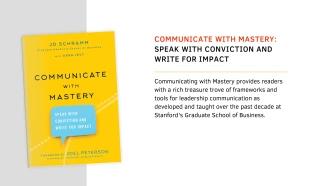 JD Schramm has over 20 years of experience teaching graduate-level courses at USC (Annenberg), Stanford, Columbia and NYU. His focus in communication management is to mentor and support leaders in defining and then sharing the difficult stories that need to be told. He’s the author of the book "Communicate with Mastery: Speak with conviction and write for impact".