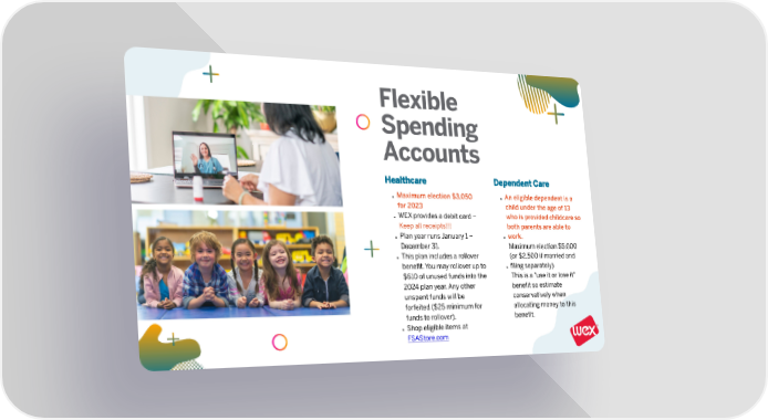 Flexible Spending Accounts Healthcare DependentCare Maximum election $3,050 An eligible dependent is a for 2023 child under the age of 13 WEX provides a debit card – who is provided childcare so Keep allreceipts!!! both parents are able to Plan year runs January 1 – work. December31. Maximum election $5,000 This plan includes a rollover (or $2,500 if married and benefit. You may rollover up to filing separately) $610 of unused funds into the This is a "use it or lose it" 2024 plan year. Any other benefit so estimate unspent funds will be conservatively when forfeited ($25 minimum for allocating money to this funds torollover). benefit. Shop eligible items at FSAStore.com