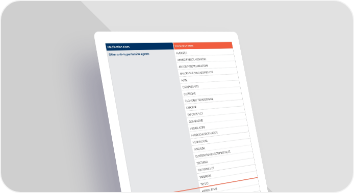 Medication class Medication name Other anti-hypertensive agents ALISKIREN AMLODIPINE/OLMESARTAN AMLODIPINE/TELMISARTAN AMLODIPINE/VALSARTAN/HCTZ AZOR CATAPRES-TTS CLONIDINE CLONIDINE TRANSDERMAL EXFORGE EXFORGE HCT GUANFACINE HYDRALAZINE HYDROCHLOROTHIAZIDE METHYLDOPA MINOXIDIL OLMESARTAN/AMLODIPINE/HCTZ TEKTURNA TEKTURNA HCT TRIBENZOR TRYVIO Platelet aggregation inhibitors ASPIRIN 81 MG BRILINTA CLOPIDOGREL DIPYRIDAMOLE DIPYRIDAMOLE ER/ASPIRIN EFFIENT PLAVIX PRASUGREL YOSPRALA ZONTIVITY 23