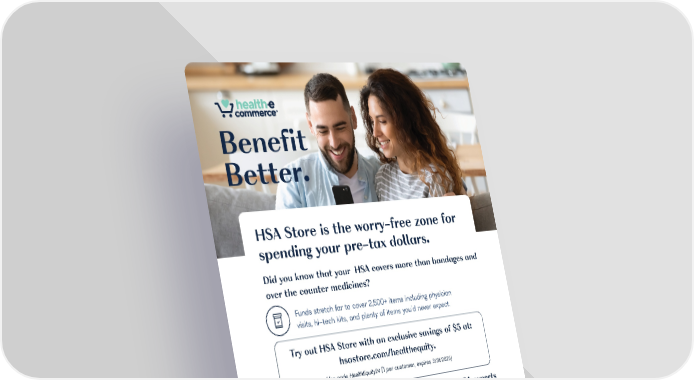 Benefit Better. HSA Store is the worry-free zone for spending your pre-tax dollars. Did you know that your HSA covers more than bandages and over the counter medicines? Funds stretch far to cover 2,500+ items including physician visits, hi-tech kits, and plenty of items you'd never expect. Try out HSA Store with an exclusive savings of $5 at: hsastore.com/healthequity. Use code HealthEquity24 (1 per customer, expires 3/31/2025) In addition to our products, tools, and services, HSA experts are available 24/7 via phone and chat. They are able to answer general questions about year-end deadlines, maximum contributions, order statuses, returns, exchanges, products, and pricing. Last but not least, HSA Store makes payment processing seamless with no purchase verification when using your HSA card. HealthEquity and the HSA Store are separate companies and are not responsible for each other's policies or services. When you make a purchase through the HSA Store from a link on a HealthEquity site, we may earn a referral commission.