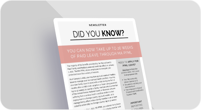 MA Residents may take up to 26 weeks of paid leave through the state. Learn more