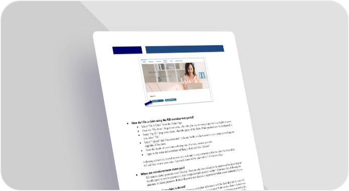 • How do I file a claim using the RSI member web portal? • Select “File A Claim” from the Home Page • From the “Pay From” drop down menu, select the plan you are using to pay for your eligible expense • From “Pay To” drop down menu, select the payee of the claim. If the payment is to be reimbursed to you, select “Me”. • Select “Upload Valid Documentation” to locate the file you have saved to your computer verifying the eligibility of the claim. • Enter the details of your claim including date of service, amount, provider. • Agree to the terms and conditions of filing a claim and click “Submit” Following submission, you will receive an e-mail and/or text confirmation that the claim has been filed. RSI will then review your claim. Approved claims will be paid within 7-10 business days. • When are reimbursement claims paid? RSI initiates claims payments every Monday. Members who have selected to be reimbursed via direct deposit should expect to receive payments in their designated bank accounts within 1-2 business days following the initiation of claims payments. If direct deposit is not selected, a paper check will be issued and mailed to you. • What happens if my claim is denied? Following review of the claim by RSI, if there is incomplete information or if the claim filed fails to meet the requirements of an eligible expense of the plan, your claim may be denied. In the event a claim is denied, you will receive an e-mail or text notification notifying you of the denial. For additional information including the reason for denial, you will need to visit the Message Center in your RSI member portal or mobile app. If RSI requires additional documentation in order to verify the claim, you will see a notification under the “Tasks” section on your Home Page. • Who should I contact if I have any questions or need additional assistance with my claims or the RSI online experiences? The RSI Claims Department is here to help you! Our friendly team of experts can be reached at 1-855-493-9859 Monday through Friday, 8am - 4:30pm or via e-mail at [email protected].