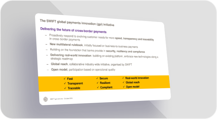 The SWIFT global payments innovation initiative Page 4 Page 6