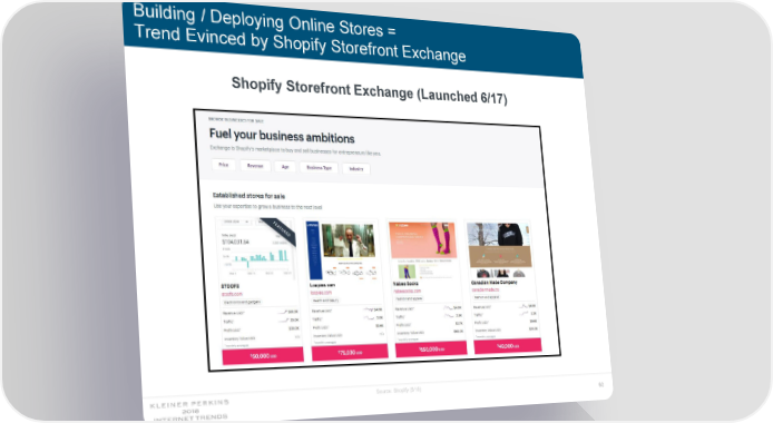 Internet Trends 2018 Page 59 Page 61Building / Deploying Online Stores = Trend Evinced by Shopify Storefront Exchange Shopify Storefront Exchange (Launched 6/17) Loopies.com Source: Shopify (5/18) 60