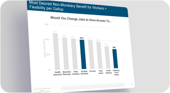 Most Desired Non-Monetary Benefit for Workers = Flexibility per Gallup Would You Change Jobs to Have Access To… 75% 61% 54% 53% 51% 51% 48% ) 50% 7 1 0 40% (2 A 35% US , re ha25% S 0% Health Monetary Paid Flexible Pension Paid Profit Working Insurance Bonuses Vacation Schedule Leave Sharing From Home Source: Gallup 2017 State of the American Workplace Note: *Flexible schedule defined as ability to choose own hours of work. Gallup developed State of the American Workplace using data collected from more than 195,600 USA employees via the Gallup Panel and Gallup Daily tracking in 2015 162 and 2016, and more than 31 million respondents through Gallup's Q12 Client Database. First launched in 2010, this is the third iteration of the report.