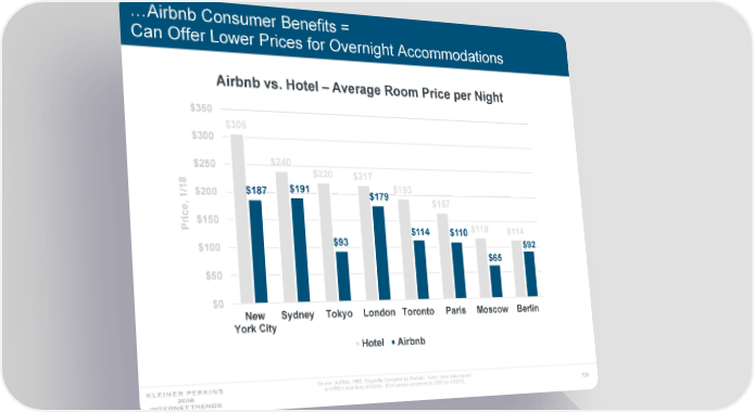 …Airbnb Consumer Benefits = Can Offer Lower Prices for Overnight Accommodations Airbnb vs. Hotel –Average Room Price per Night $350 $306 $300 $240 $250 $220 $217 18 $193 $191 $187 $200 1/ $179 $167 ce, i $150 Pr $118 $114 $114 $110 $93 $92 $100 $65 $50 $0 New Sydney Tokyo London Toronto Paris Moscow Berlin York City Hotel Airbnb Source: AirDNA, HRS, Originally Compiled by Statista. Note: Hotel data based on HRS’s inventory of hotels. Euro prices converted to USD on 1/22/18. 124