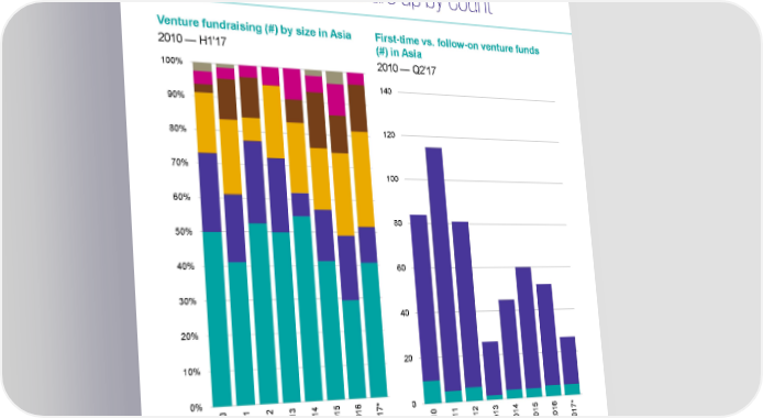Venture fundraising (#) by size in Asia First-time vs. follow-on venture funds (#) in Asia 2010 — H1'17 2010 — Q2'17 100% 140 90% 120 80% 70% 100 60% 80 50% 40% 60 30% 40 20% 20 10% 0% 0 1 2 3 4 5 6 * 7 0 1 1 1 1 1 1 1 0 0 0 0 0 0 0 1 0 1 2 3 4 5 6 * 2 2 2 2 2 2 2 0 1 1 1 1 1 1 1 7 2 0 0 0 0 0 0 0 1 2 2 2 2 2 2 2 0 2 Under $50M $50M-$100M $100M-$250M First-time Follow-on $250M-$500M $500M-$1B $1B+ Source: Venture Pulse, Q2'17, Global Analysis of Venture Funding, KPMG Enterprise. *As of 3/3/1/2017. Data provided by PitchBook, July 13, 2017. © 2017 KPMG International Cooperative (“KPMG International”). KPMG International provides no client services and is a Swiss entity with which the independent member firms of the KPMG network are affiliated. #Q2VC