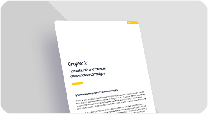 006 Chapter 3: How to launch and measure cross-channel campaigns Optimize every campaign with data-driven insights. The future of advertising is all about meeting the right prospective buyer at a target account, or the right buyer at an IAP account, with the right content at the right time on their preferred channels. Data is the key to connecting with customers this way.The sophisticated and impactful campaigns of the future will continuously use data to integrate relevant content throughout a buyer’s ongoing journey with the brand. While artificial intelligence and automation promise the potential for optimizing content for different audiences in real time, based on customers’ actions, to ensure the best outcome, today’s GTM and ABM orchestration and execution platforms continue to require strategic input on messaging from marketing strategists, and the processes require some level of human intelligence and periodic monitoring and intervention to be effective. TTooddaayy ccaammppaaiiggnn ppllaannnniinngg aallwwaayyss ccaallllss ffoorr aalliiggnnmmeenntt wwiitthh bbuussiinneessss oouuttccoommeess aanndd KKPPIIss,, ssuuppppoorrtteedd bbyy ddaattaa.. When building a data-driven campaign, you can begin by analyzing the journeys your target buyers and customers are currently on, and measuring the success of different content and channels throughout those journeys. Advertisers are reaching customers through a multitude of channels and formats. With cross-channel measurement, advertisers can better understand customer preferences and ensure that every message is relevant, authentic, and personalized. Kwanzoo