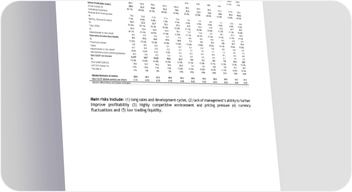 Makor Securities Makor Securities London Ltd (Paris Rep. Office) 336 rue Saint Honore 75001 Paris, FRANCE +33 1 42 33 02 05 Makor Capital Markets Makor Securities London Ltd (Geneva Rep Office) 27 rue de la Croix-d’Or 1204 Geneve, SWITERLAND +41 223 106 916 Makor Capital Rogovin Tower Menachem Begin 11 52689 Ramat Gan, ISRAEL +972 3 545 3777 Makor Securities London Ltd 7/8 Savile Row 2nd Floor London W1S 3PE, ENGLAND +44 207 290 5777 Main risks include: (1) long sales and development cycles, (2) lack of management’s ability to further improve profitability (3) highly competitive environment and pricing pressure (4) currency fluctuations and (5) low trading liquidity.