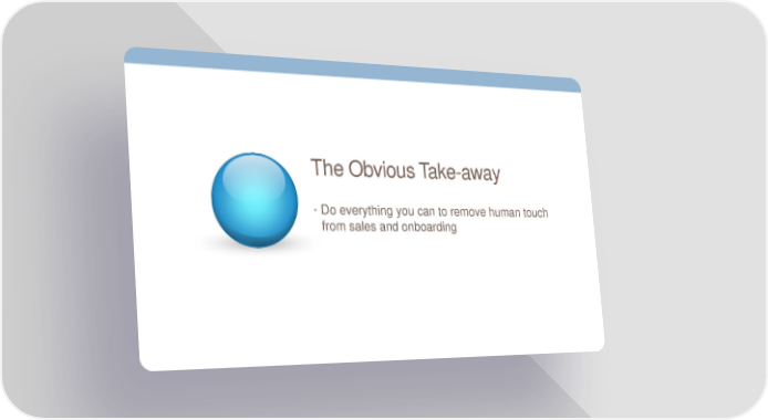 The Obvious Take-away • Do everything you can to remove human touch from sales and onboarding
