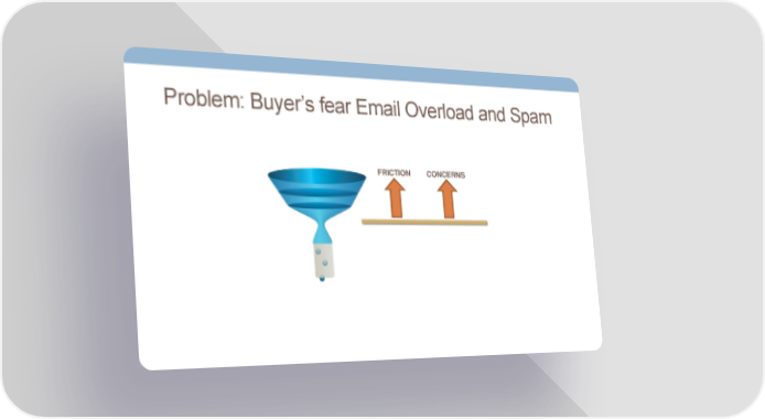 Problem: Buyer’s fear Email Overload and Spam FRICTION CONCERNS [Get Inside Your Buyers Head] Page 49 Page 51