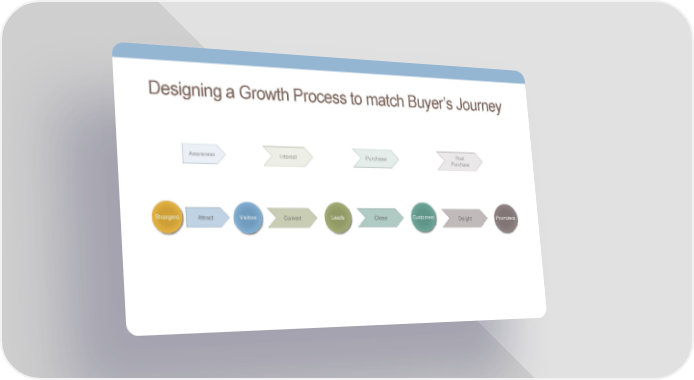 Designing a Growth Process to match Buyer’s Journey Awareness Interest Purchase Post Purchase Strangers Attract Visitors Convert Leads Close Customers Delight Promoters