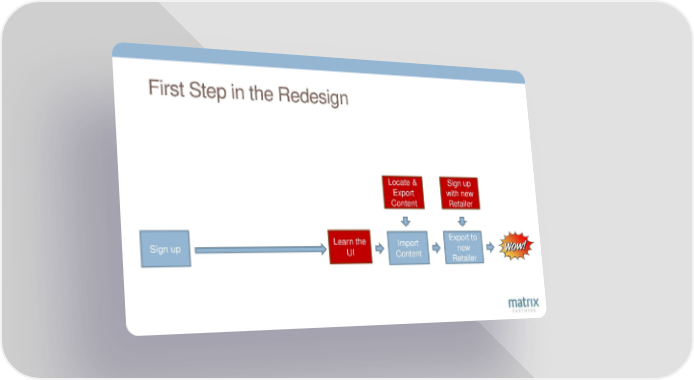 [Get Inside Your Buyers Head] Page 81 Page 83First Step in the Redesign Locate & Sign up Export with new Content Retailer Sign up Learn the Import Export to UI Content new Retailer
