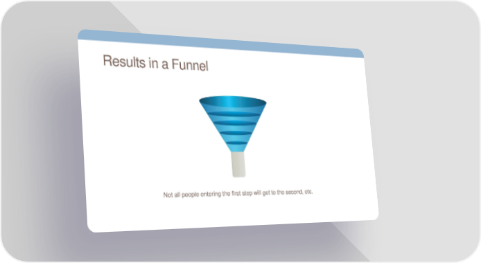 Results in a Funnel Not all people entering the first step will get to the second, etc.