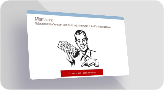 Mismatch: Sales often handle every lead as though they were in the Purchasing phase I’m paid to sell. I better be selling.