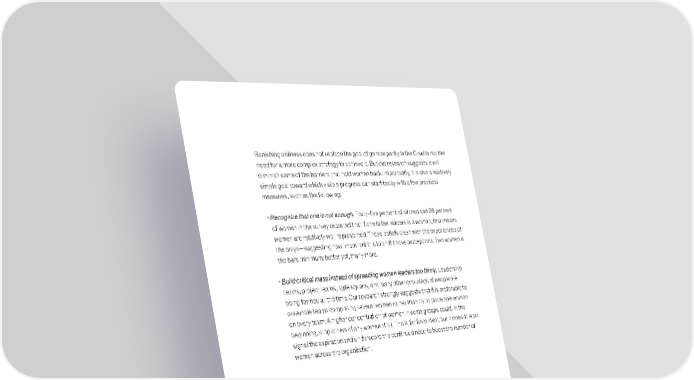 Banishing onliness does not replace the goal of gender parity in the C-suite nor the need for a more complex strategy to achieve it. But our research suggests it will diminish some of the barriers that hold women back. Importantly, it is also a relatively simple goal toward which visible progress can start today with a few practical measures, such as the following: • Recognize that one is not enough. Forty-five percent of all men and 28 percent of women in the survey reported that if one in ten leaders is a woman, that means women are relatively well represented. These beliefs clash with the experiences of the onlys—suggesting how important it is to shift those perceptions. Two women is the bare minimum; better yet, many more. • Build critical mass instead of spreading women leaders too thinly. Leadership teams, project teams, agile squads, and many other groupings of people are being formed all the time. Our research strongly suggests that it is preferable to assemble teams comprising several women rather than try to place one woman on every team. A higher concentration of women in some groups could, in the beginning, strip others of any women at all. This is far from ideal, but it does at least signal the aspiration and underscore the continued need to boost the number of women across the organization. QPrint 2019 One is the lonliest number Exhibit 1 of 1 Exhibit Women are more likely to experience discrimination in the workplace than men, but being the only woman is an even worse experience. Employees who have experienced microaggressions during the normal course of business, % Œomen Only woman or only Woman among other women €en man in office or man among other men in office †eeding to provide more evidence of your competence Š1 20 2‹ 13 than others do ƒaving your „udgment …uestioned ‹ 30 32 26 in your area of expertise ‡eing addressed in a lessˆ 3Š 1 2‹ 16 thanˆprofessional way ‡eing mista‰en for someone 3Š 12 1Š more „unior ƒearing demeaning remar‰s about 2‹ 13 1‹ you or people li‰e you ource 201 eann rg and €c‚insey Women in the Workplace study 2