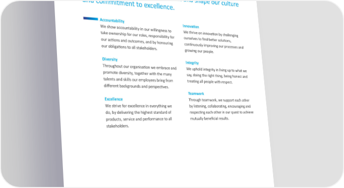 MMI is a values-based organisation. As a young company, six values guide our actions, intent and shape our culture and commitment to excellence. Accountability Innovation We show accountability in our willingness to We thrive on innovation by challenging take ownership for our roles, responsibility for ourselves to find better solutions, our actions and outcomes, and by honouring continuously improving our processes and our obligations to all stakeholders. growing our people. Diversity Integrity Throughout our organisation we embrace and We uphold integrity in living up to what we promote diversity, together with the many say, doing the right thing, being honest and talents and skills our employees bring from treating all people with respect. different backgrounds and perspectives. Teamwork Excellence Through teamwork, we support each other We strive for excellence in everything we by listening, collaborating, encouraging and do, by delivering the highest standard of respecting each other in our quest to achieve products, service and performance to all mutually beneficial results. stakeholders. 9