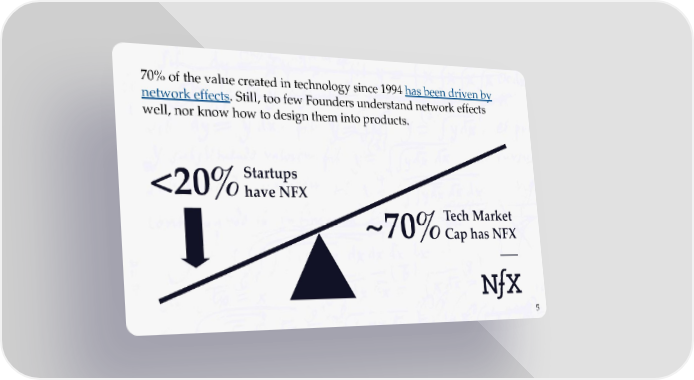 70% of the value created in technology since 1994 has been driven by network effects. Still, too few Founders understand network effects well, nor know how to design them into products. 5