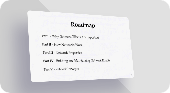 The Network Effects Bible Page 2 Page 4Roadmap Part I - Why Network Effects Are Important Part II - How Networks Work Part III - Network Properties Part IV - Building and Maintaining Network Effects Part V - Related Concepts 3