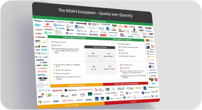 The NOAH Ecosystem – Quality over Quantity Corporates & Internet 9,000 Companies from Europe 500 Corporates / Champions Willing to digitize 10 昀椀xed verticals Rich Data NOAH Core Network Interested in digital challengers Investment Banking judgement data M&A from the NOAH Corporate Finance Team ~600 ~100 Partnerships Hot Companies Meetings with Investors Market Leaders Top Service Providers for the digital ~100 VC, Growth, Buyout sector 150+ Venture Debt Investor Partners Partners Across 135 categories Close to 100% shareholder coverage of Many SaaS solutions European growth capital universe NOAH customer lead gen for service Signi昀椀cant investor to investor meetings provider at NOAH 400 Service Providers 1,300 Investors for the Digital Sector eventures 5 Service Providers Investors