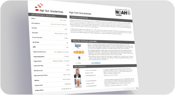 High-Tech Gründerfonds KEY CORPORATE FACTS / KPIS INVESTOR DESCRIPTION Offices Bonn / Berlin Launched in 2005, High-Tech Gründerfonds (HTGF) is a powerful engine that drives the success of high- tech start-ups. Armed with expertise, entrepreneurial spirit and passion, the experienced team of investment managers and start-up experts guide top companies on their journey from launch to success. HTGF focuses on high-potential start-ups active in the sectors of software, media, internet, hardware, energy and automation, life Active Markets Europe, with a focus on Germany sciences andchemicals. With EUR 892,5 million in investment volume across three funds (EUR 316 million for HTGF III) and an international network of partners, HTGF has already financed more than 500 start-ups. Founded 2005 Todate, external investors have injected over EUR 1.7 billion into the HTGF portfolio via more than 1,300 follow-on financing rounds. HTGF has also successfully sold interests in more than 100 companies. Investors in this public-private partnership include the Federal Ministry for Economic Affairs and Energy, the KfWBanking Group, and Fraunhofer-Gesellschaft e.V., as well as 31 Investors from the German economy. Employees 66 (of which 66 in Europe) Current Fund Size €316m SELECTED PORTFOLIO COMPANIES Use of Debt No Orbex is a UK-based spaceflight company, with subsidiaries and production facilities in Denmark and Germany. The company is constructing a completely re-thought and re-designed orbital launch vehicle, called AUM N/A Prime, to deliver small satellites into Earth’s orbit. Orbex will launch orbital vehicles from the newly-announced UK Vertical Launch spaceport in Sutherland in the Scottish Highlands as part of the main consortium. eGym is going to digitalize the fitness industry. New strength machines have been developed that generate Target Investment Size €1m (Seedround) up to €3m the resistance electronically. These machines offer training methods that are 4 times more effective and healthier than current training methods and push all data to the eGym web portal. The eGym personal fitness portal targets end users with individual services around their training and health. Target Geographies Germany NFON AG offers a powerful hosted PBX (Private Branch Exchange) service. Customers enjoy all functions of a “high-end” PBX, without the necessity of high investments. NFON AG is the first HTGF portfolio company Target Sectors Hardware, Software, Life Science which successfully go public in May 2018. • Full Portfolio • HTGF Portfoliomatrix Investment Style Active KEY CONTACTS Deal Structures Minority Dr. Alex von Frankenberg • Dr. Alex von Frankenberg became Managing Director of High-Tech Gründerfonds in 2005. Prior to this, he was responsible for spin-offs from Key Investment Criteria Seed Funding Managing Partner Siemens Corporate Technology in his role as Venture Manager at the Siemens Technology Accelerator (STA). [email protected] • Companies: eGym, locr, Outfittery Website www.htgf.de/en/ Dr. Michael Brandkamp • Dr Michael Brandkamp has been with High-Tech Gründerfonds right from Contact Email [email protected] the very beginning and drafted a significant part of the business plan that Managing Partner today still forms the basis of HTGF. He regards establishing HTGF as an [email protected] entrepreneurial challenge and at the same time a great privilege. Contact Phone +49 228 823 00 100 • Companies: Transinsight, AlsterScience, ImmunService INVESTOR BOOK 66