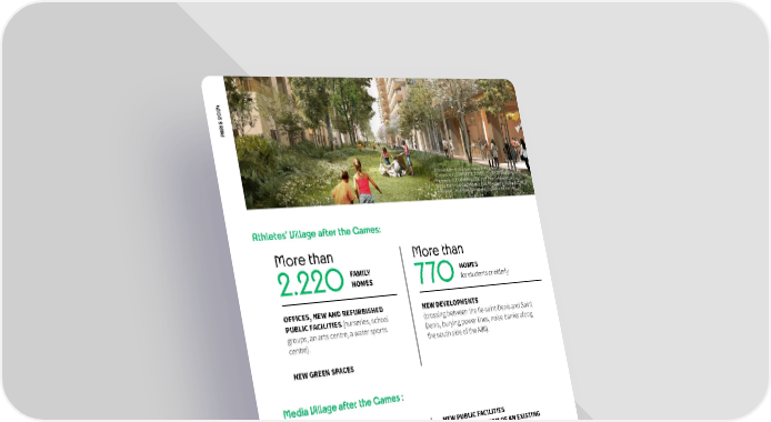 4 02 PARIS 2 © SOLIDEO – Dominique Perrault, Architecte mandataire, (Groupement DOMINIQUE PERRAULT) ADAGP / Ingérop, MOE Ingénierie TCE / Une Fabrique de la Ville, urbanistes / CITEC, consultant mobilités / Agence TER, Paysagiste / UrbanEco, MOE écologue / Jean-Paul Lamoureux, consultant éclairage Athletes’ Village after the Games: More than More than FAMILY HOMES 2.220HOMES 770for students or elderly OFFICES, NEW AND REFURBISHED NEW DEVELOPMENTS PUBLIC FACILITIES (nurseries, school (crossing between the Ile-saint-Denis and Saint groups, an arts centre, a water sports Denis, burying power lines, noise barrier along centre). the south side of the A86). NEW GREEN SPACES Media Village after the Games : HOMES NEW PUBLIC FACILITIES 1.300 AND THE EXTENSION OF AN EXISTING 13 HA PARK S E M A N G E P 4 O 2 0 S 2 I R A P © Solideo, Illumens, Dominique Perrault / Ingérop / Une Fabrique de la 25 Ville / VITEC / Agence TER / UrbanEco / Jean-Paul Lamoureux