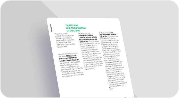 4 THE PARTNERS, 02 VITAL TO THE SUCCESS PARIS 2 OF THE GAMES The partners, whether The partners also share Finally, the partners are TRUE worldwide (members of the IOC’s THEIR KNOWLEDGE AND AMBASSADORS FOR THE PARIS TOP programme) or national EXPERTISE, HELPING TO MAKE 2024 VISION, using their ecosystems (premium, o昀昀icial or supporters), THE GAMES RESPONSIBLE AND to spread the word (among their will play a vital role in the SUSTAINABLE. The implementation employees, customers, suppliers, etc.) organisation and success of the and participating fully in our heritage of concrete solutions within Pulse, the Paris 2024 Games. programmes. They help promote headquarters of the Organising sporting activities through Olympic Committee, illustrates this Day, and sport in schools with the contribution. For example, EDF is Olympic and Paralympic Week. Allianz, supplying 100% renewable energy, Beyond their 昀椀nancial contribution, Toyota and Groupe BPCE have shown they provide PRODUCTS AND produced in France, while Coca-Cola particularly strong commitment to SERVICES NEEDED FOR THE has provided water and soda these two annual events. They also ORGANISATION OF THE GAMES, fountains. This is the 昀椀rst stage in the encourage the Olympic and rollout of these solutions across all and operational support during the Paralympic athletes whom they competition venues, helping achieve event. Ten of the partners (Atos, sponsor – nearly 300 athletes in total our goal of sustainable Games, with a Alibaba, Intel, Omega, Panasonic, – to engage with the general public. minimal carbon footprint and zero Samsung, Visa, Orange, Cisco and DXC For example, FDJ, Bridgestone and single-use plastic. Technology) are already actively EDF were among the foremost players working with Paris 2024 on designing during the Tokyo Games live stream, technological systems and operations. helping to share the powerful emotions stirred up by sport with as many people as possible. Finally, our partner Orange, which is sponsoring the public marathon, is helping us realise an unprecedented vision: opening up an Olympic event to public participation for the 昀椀rst time in history. WORLDWIDE TOP Partners Premium TIER 1 Partners FRANCE O昀昀icial TIER 2 S 2019-2024 Partners E M A N G E P 4 O 2 O昀昀icial TIER 3 0 Supporters S 2 I R A P 26