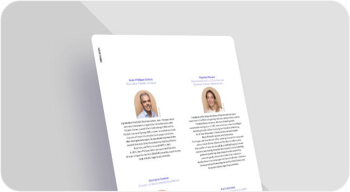 4 02 PARIS 2 Jean-Philippe Gatien Marlène Masure Executive Director of Sport Executive Director of Commercial Development and Partnerships aks aks ©Rudy W ©Rudy W A graduate of the ESSEC Business School, Jean- Philippe Gatien A graduate of the Burgundy School of Business with ten years’ won men’s table tennis singles silver at the Barcelona 1992 experience in the FMCG and gaming industries, Marlène Masure joined Olympic Games, a world title in Gothenburg in 1993 and an The Walt Disney Company – the world’s leading media Olympic bronze at Sydney 2000, a career record that has made and entertainment group – in 2007, where she took on the role of Digital him one of France’s finest table tennis players of all time. Marketing Director before becoming Vice-President of Marketing A昀琀er retiring from his sport, he was elected chairman of the for all lines of business in France. In 2016, she also became board of directors of the French National Institute of Sport, Head of Advertising Sales and Partnerships. Expertise, and Performance (INSEP) in 2014. For 12 years, Marlène steered all the marketing channels for the group’s In 2015, Jean-Philippe Gatien was appointed Executive various brands (Disney, Marvel and Star Wars) in order to raise Director of Sport for the Paris 2024 Bid Committee, a post he now their profile in France and abroad. By promoting the group’s media holds with the Organising Committee. solutions and creating innovative brand content, she built strategic partnerships with big-name brands from the automobile, consumer goods, restaurant and distribution industries. Marlène Masure has been appointed Executive Director of Business Development and Partnerships for the Paris 2024 Olympic and Paralympic Games Organising Committee. Georgina Grenon Director of Environmental Excellence Marie Barsacq Executive Director of Impact and Legacy aks ©Rudy W An expert in renewable energies and clean technology innovation, Georgina Grenon obtained an MSc in Chemical Engineering from the Instituto Tecnologico in Buenos Aires and an MBA from INSEAD Business aks School. She began her career in development at YPF S.A., a national oil company in Argentina. She then took up position as a director at ©Rudy W international strategy consultancy Booz Allen, devoting herself mainly A lawyer by training, Marie Barsacq worked for ten years to energy and operations and working in Europe, the USA, for the French National Olympic Committee (CNOSF), Japan and South America for nearly ten years. She moved on to become a devoting her energies to employment, training and qualification project manager for green industries at the Directorate-General of Energy in the sporting movement. She then joined the French and the Climate (DGEC), part of the French Ministry of Ecology and Energy, Football Federation (FFF), where she set up the Institute of where her brief was to support the development of renewable energy Football Coaching (IFF) before becoming the FFF’s policies and markets. She also represented France at the International assistant general manager for amateur football. S Energy Agency, promoting international cooperation in the creation of Marie Barsacq is also a member since 2018 of the Executive E markets, innovation and the deployment of clean energies, playing an M Committee of the French Football Federation. A active part at COP21 and, among other things, helping to create N G the International Solar Alliance. She then moved to ENGIE Group, Marie Barsacq then took up position as the Director of Impact E and Legacy for the Paris 2024 Bid Committee, and then P becoming director of the New Business Factory at ENGIE Fab. 4 O Georgina Grenon has joined the Organising Committee Executive Director within the Organising Committee. 2 for the Paris 2024 Olympic and Paralympic Games as its Director 0 S 2 of Environmental Excellence. I R A P 49