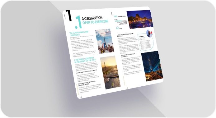 4 4 02 02 PARIS 2 PARIS 2 A ROUTE ALONG THE SEINE 1 A CELEBRATION 6KM OPEN TO EVERYONE AT LEAST 600.000SPECTATORS 10 TIMES MORE PEOPLE THAN THE STADE DE FRANCE .1 COULD ACCOMMODATE SOME 160BOATS THE TOKYO HANDOVER © Paris 2024 / Florian Hulleu CEREMONY On 8 August 2021, Paris o昀昀icially became the next host city for the Olympic Games. A UNIQUE EXPERIENCE FOR SPECTATORS AND To mark the event, Paris 2024 brought the City of Light ATHLETES ALIKE to hundreds of millions of TV viewers, to the sound of a With an uninterrupted view along the Seine, a sound Teddy Rinner © P S B reworked version of the Marseillaise. Viewers were treated apt KM i / s system and 80 enormous screens installed along the te uot P to a thrilling BMX race across the roo昀琀ops of Paris; route, spectators will not miss a moment of the spectacle, Three-Time olympic aq champion judoka and a gigantic Paris 2024 昀氀ag was 昀氀own from the Ei昀昀el and can drink in the unique atmosphere permeating "Experiencing an Olympic Ceremony, while Tower, as planes streaked the colours of the French 昀氀ag every corner of the city. across the sky. representing France, is always intensely emotional. But to experience it here, in The athletes will be at the heart of the ceremony as never France, at the heart of Paris and in direct before: they will kick proceedings o昀昀, and contribute to contact with spectators who have come from In the Trocadéro gardens, French medallists returning from all over France and all over the world, will the ceremony from beginning to end, as they pass down Tokyo celebrated the Games’ arrival in France, with over indubitably be unforgettable. This Opening ©BOBY the Seine. They will have a superb view of the capital, and 5.000 at the Livestream. Ceremony will break the mould. Even now, will get a glimpse of the exceptional venues in which they I cannot wait to be there!" A HISTORIC CEREMONY are to perform. IN THE HEART OF THE CITY A CEREMONY DEVISED THROUGH CLOSE COLLABORATION Paris 2024 is breaking the mould: for the 昀椀rst time ever, The Opening Ceremony of the Paris 2024 Olympic Games the Opening Ceremony of the Summer Olympic Games has come about through shared ambition and close will be held in the very heart of the city, aboard a 昀氀otilla of collaboration between the State, the Paris municipal boats carrying participants down the Seine. The world’s authorities, the Île-de-France regional authorities, greatest celebration of sport, in the world’s 昀椀nest city! AN OPEN-HEARTED AND POPULAR CELEBRATION the IOC and the CNOSF. Never before will so many people have shared Throughout 2021, Paris 2024 has been working closely with the public authorities to validate all aspects of in the experience of an Opening Ceremony: the plans: operational, technical, 昀椀nancial, judicial at least 600,000 spectators will be watching from the quays and bridges along the Seine. Around half will and regulatory. This work will continue in 2022. The artistic direction be admitted free of charge! S PARIS’ ARCHITECTURAL HERITAGE AS AN S for the ceremony will also be chosen in 2022. E E M UNEQUALLED BACKDROP M A A N G N G E E P The Seine, its bridges and the monuments of the capital P 4 O will serve as the backdrop to a breathtaking spectacle, 4 O 2 2 0 0 S 2 in which artistic performances blend harmoniously with S 2 I I R sporting performances. R A © Paris 2024/pawel.gaul/Florian Hulleu A © Paris 2024 / Florian Hulleu P P 8 9