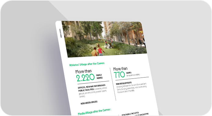 4 02 PARIS 2 © SOLIDEO – Dominique Perrault, Architecte mandataire, (Groupement DOMINIQUE PERRAULT) ADAGP / Ingérop, MOE Ingénierie TCE / Une Fabrique de la Ville, urbanistes / CITEC, consultant mobilités / Agence TER, Paysagiste / UrbanEco, MOE écologue / Jean-Paul Lamoureux, consultant éclairage Athletes’ Village after the Games: More than More than FAMILY HOMES HOMES 2.220 770for students or elderly OFFICES, NEW AND REFURBISHED NEW DEVELOPMENTS PUBLIC FACILITIES (nurseries, school (crossing between the Ile-saint-Denis and Saint groups, an arts centre, a water sports Denis, burying power lines, noise barrier along centre). the south side of the A86). NEW GREEN SPACES Media Village after the Games : HOMES NEW PUBLIC FACILITIES 1.300 AND THE EXTENSION OF AN EXISTING 13 HA PARK S E M A N G E P 4 O 2 0 S 2 I R A P © Solideo, Illumens, Dominique Perrault / Ingérop / Une Fabrique de la 25 Ville / VITEC / Agence TER / UrbanEco / Jean-Paul Lamoureux