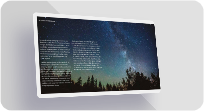 17 | PwC’s 21st CEO Survey In regions where emerging economies are Regional overlaps are interesting, but so dominant – Latin America, Central & Eastern are the differences in terms of top threats. Europe, the Middle East, and Africa – ‘social ‘Cyber threats’ are the No. 1 concern in North instability’ is a consistent top 10 ‘extreme America, for example, but rank only 11th in concern’. ‘Protectionism’, on the other hand Central & Eastern Europe and 15th in Latin –which makes the top 10 in North America, America. Similarly, ‘availability of key skills’ Western Europe, and Asia-Pacific – does is the top threat in Asia-Pacific and Central not register as an overriding concern in & Eastern Europe, but is not even among the these regions. top five in any other region. ‘Populism’ rises to the top of the Western European and Latin Looking across the top 10 threat lists of all American threat lists, and is of concern in seven regions, ‘geopolitical uncertainty’, Africa and Central & Eastern Europe, but it’s ‘over-regulation’, and ‘increasing tax burden’ of moderate to low interest in North America, are the three that appear on every region’s Asia-Pacific, and the Middle East. radar (see Exhibit 8). ‘Availability of key skills’ and ‘speed of technological change’ appear on every list except those of Latin America and Africa, respectively. Perhaps the most ominous finding is terrorism’s rise in the rankings; it is a top five ‘extreme concern’ in every region save Africa.