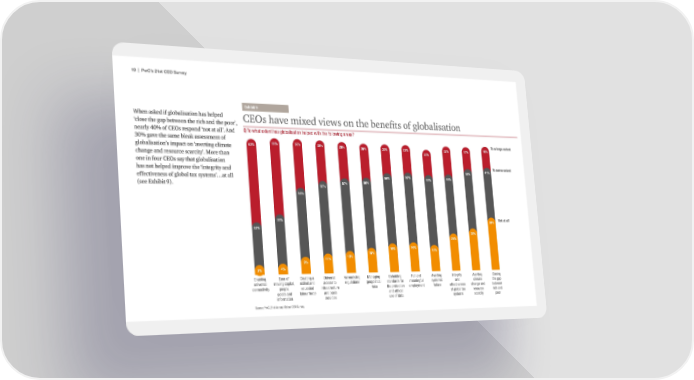 19 | PwC’s 21st CEO Survey Ehiit 9 When asked if globalisation has helped CEOs have mixed views on the benefits of globalisation ‘close the gap between the rich and the poor’, nearly 40% of CEOs respond ‘not at all’. And Q £o w‹at eŽtent ‹as ŒlobalŠsatŠon ‹ele wŠt‹ t‹e ˜ollowŠnŒ areas‘ 30% gave the same bleak assessment of Žo a lar‘e etent globalisation’s impact on ‘averting climate 63% 58% 37% 3% 28% 26% 23% 22% 22% 17% 18% change and resource scarcity’. More than 2% one in four CEOs say that globalisation Žo some etent has not helped improve the ‘integrity and 5% 41% effectiveness of global tax systems’…at all 56% 56% 57% 49% (see Exhibit 9). 57% 56% 57% 53% 37% 39% Œot at all 32% 3% 26% 18% 19% 17% 13% 15% 9% 11% 3% 4% EnablŠnŒ Ease o˜ CreatŠnŒ a ›nŠersal ¢ar…onŠsŠnŒ šanaŒŠnŒ ›‹olŠnŒ „ull an AertŠnŒ ™nteŒrŠt AertŠnŒ ClosŠnŒ unŠersal …oŠnŒ caŠtal, s‡Šlle an access to reŒulatŠons ŒeoolŠtŠcal stanars ˜or …eanŠnŒ˜ul sste…Šc an clŠ…ate t‹e Œa connectŠŠt eole, eucate Šn˜rastructure rŠs‡s t‹e rotectŠon e…lo…ent ˜aŠlure e˜˜ectŠeness c‹anŒe an between Œoos an labour ˜orce an basŠc an et‹Šcal o˜ Œlobal taŽ resource rŠc‹ an Šn˜or…atŠon serŠces use o˜ ata sste…s scarcŠt oor Source: PwC, 21st Annual Global CEO Sure
