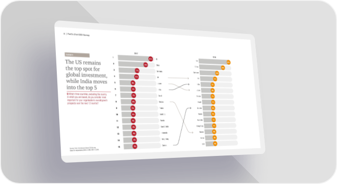 8 | PwC’s 21st CEO Survey 217 218 Ehiit 4 1 43% ›S ›S 46% The US remains 2 33% C‹Šna C‹Šna 33% the top spot for 3 17% Ger…an Ger…an 2% global investment, 4 15% ›œ ›œ 15% while India moves 5 8% žaan ™nŠa 9% into the top 5 6 7% ™nŠa žaan 8% Q hich three countries, excluding the country 7 7% raŸŠl „rance 7% in which you are based, do you consider most important for your organisation’s overall growth 8 6% šeŽŠco raŸŠl 7% prospects over the next 12 months? 9 5% „rance Canaa 6% 1 5% AustralŠa ¡ussŠa 5% 11 4% ¡ussŠa AustralŠa 5% 12 4% SauŠ ArabŠa ¢onŒ œonŒ 5% 13 4% ™nonesŠa šeŽŠco 4% 14 4% ¢onŒ œonŒ œorea 4% Source: PwC, 21st Annual Global CEO Sureƒ 15 4% Canaa ›AE 4% ase: All resonents 2018 1,23€ 2017 1,37‚