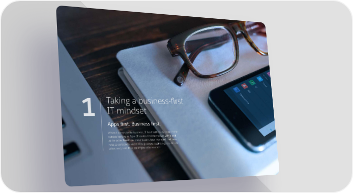 4 Taking a business-first 1 IT mindset Apps first. Business first. When it comes to the business, IT has traditionally been on the outside looking in. Now IT leaders find themselves with a seat at the table. Read how these leaders have leveraged their new roles to collaborate more closely toward business goals, deliver value, and push IT as the engine of innovation.