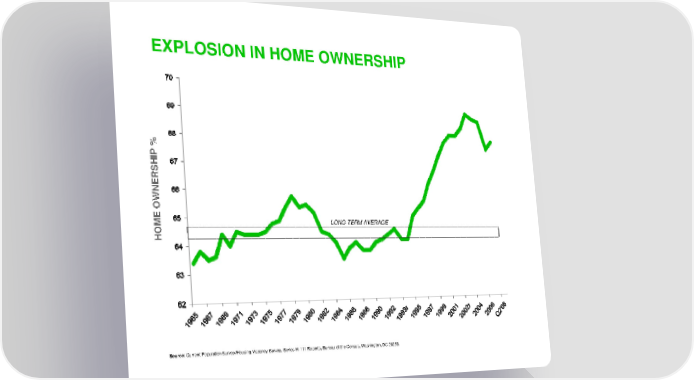 EXPLOSION IN HOME OWNERSHIP % LONG-TERM AVERAGE HOME OWNERSHIP Source: Current Population Survey/Housing Vacancy Survey, Series H-111 Reports, Bureau of the Census, Washington, DC 20233.
