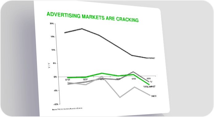ADVERTISING MARKETS ARE CRACKING Y / Y Source: TNS U.S. Advertising Expenditure Estimates