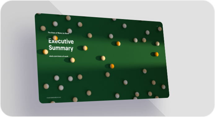 The State of Work 44 The State of Work, by Slack Executive Summary slack.com/state-of-work ©© S SLLAACCKK T TEECCHHNNOOLLOOGGIESIES,, IN INCC.. 22001199