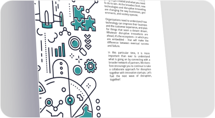 Opportunity for Engagement In a time of hyper-connectivity and great change, it is essential to under- stand the changing world – how value is going to get created and what you need to do to win. At the broadest level, new technologies and disruptive innovating are changing the way businesses, gov- ernments, and society operate. Organizations need to understand how technology can improve their business and the customer experience, and plan for things that seem a distant dream. Whatever disruptive innovations are ahead, it’s the ecosystem – in which you are embedded - that will make the difference between eventual success and failure. In this particular time, it is more important than ever to understand what is going on by connecting with a broader network of partners. We there- fore encourage you to continue to take a collaborate approach for disruption together with innovation startups. Let’s fuel the next wave of disruption, together! 10