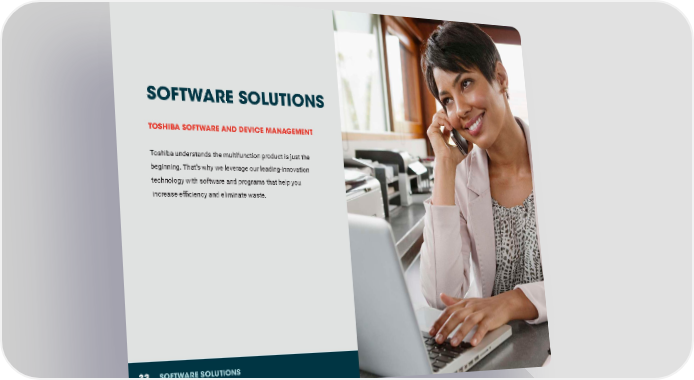 SOFTWARE SOLUTIONS TOSHIBA SOFTWARE AND DEVICE MANAGEMENT Toshiba understands the multifunction product is just the beginning. That’s why we leverage our leading-innovation technology with software and programs that help you increase efficiency and eliminate waste. 33 SOFTWARE SOLUTIONS