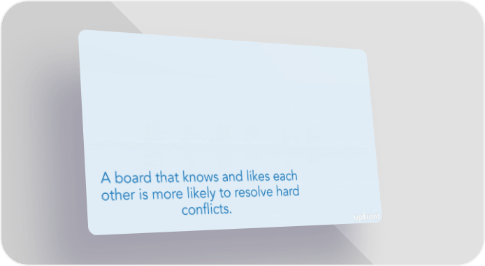 A board that knows and likes each other is more likely to resolve hard conflicts.