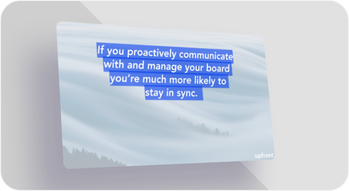 If you proactively communicate with and manage your board you’re much more likely to stay in sync.